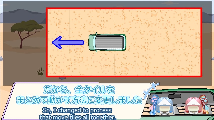 今までは地面タイルの座標や画像の更新を1枚1枚、