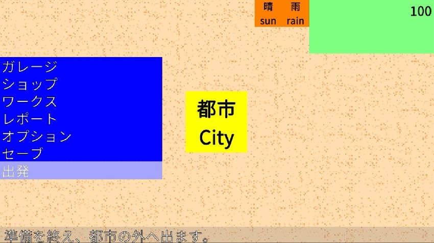 ドライブシーンへはコマンドの一番下「出発」コマンドから移行できます。